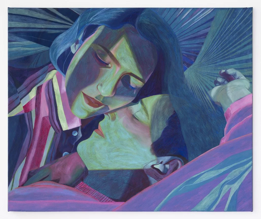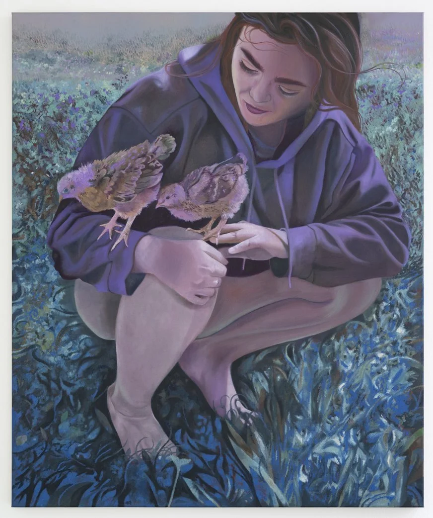 Seline Burn activates our visual memory by drawing on the iconographic repertoire of art, and personal histories. In doing so, she sensitively updates the tradition of painting, creating narrative visual worlds that oscillate between fleeting moments and symbolic charge. In the exhibition Familiarities, Burn confronts us with intimate depictions of family relationships, childhood memories, and internalised processes – offering a window into her own (self-)reflective painterly practice. We encounter Burn’s surroundings, but in particular, we encounter Seline Burn herself. Her subtle, constructed compositions merge the personal and the universal, the familiar and the iconic, inviting emotional and intellectual engagement. Burn’s strategic dialogue with art historical references grounds her work in tradition, while her vibrant color palettes and contemporary, in some ways rebellious, aesthetic approach propel these motifs into the present, resulting in a body of work that is both deeply rooted and refreshingly modern.
