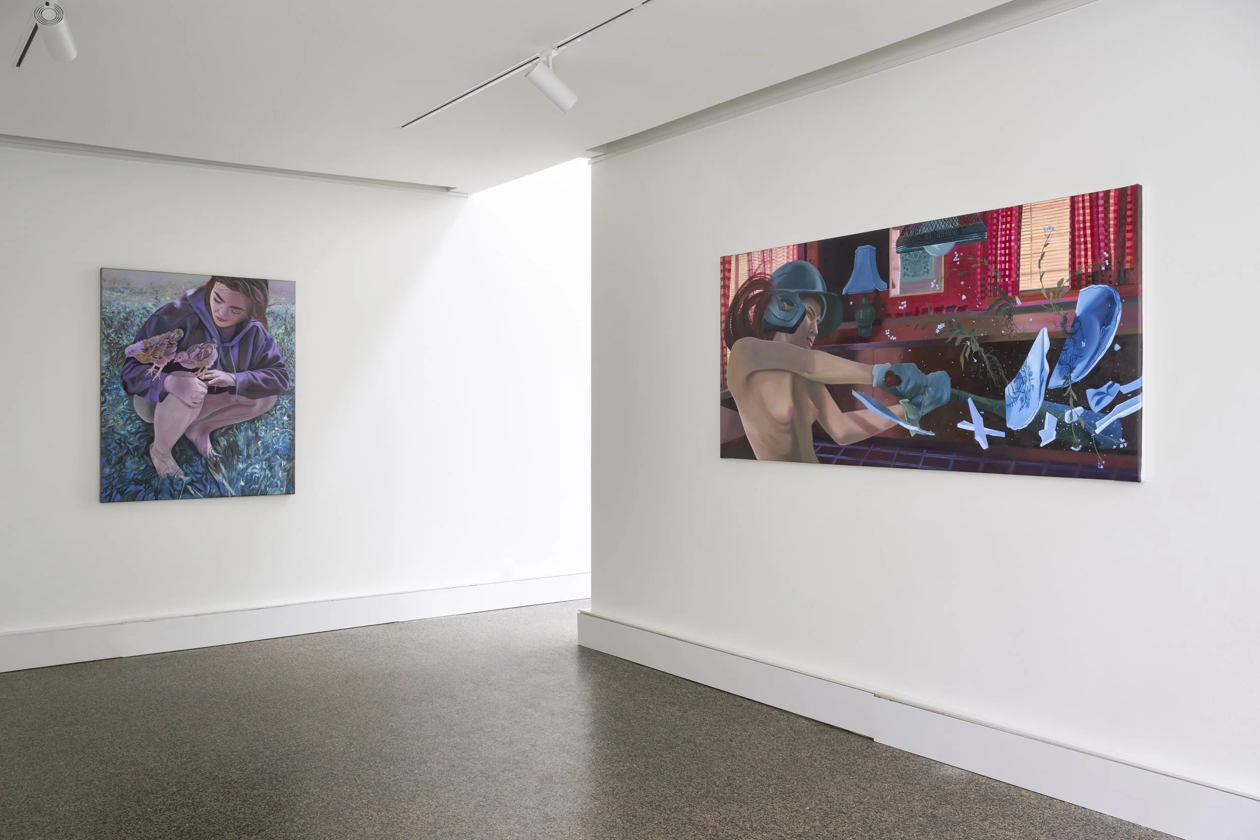In Familiarities, Seline Burn references familiar domestic objects and personal acquaintances, drawing from both her immediate surroundings and art historical “acquaintances.” Her work follows the tracks of her past just as much as it explores the tradition of painting. Fragments of memory and family portraits are as fundamental to her works as art history itself. Through this, the artist calls into question the way familiarity is intertwined with the internalised acceptance of our cultural traditions. Her works challenge viewers to re-examine the familiar and consider their own position. In Familiarities, Burn presents a vibrant and thought-provoking plea for questioning the assumptions that underlie our sense of the familiar.