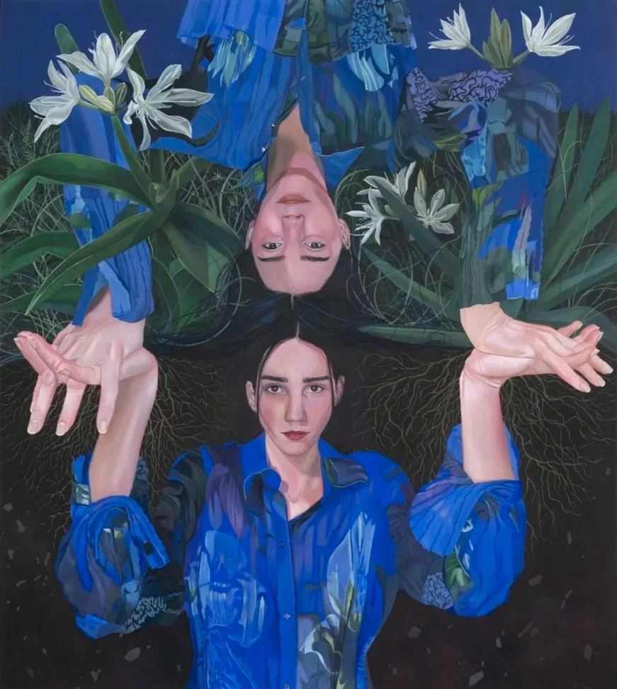 Seline Burn’s figurative works conjure up richly symbolic pictorial worlds that unfold as visual narratives. Her distinctive colour palette, modulated by the interplay of light and shadow, contours the depicted figures. The proximity to and simultaneous distance from the protagonists oscillates between a delicately applied colour and looser, sometimes pointillist-style brushwork. This dynamic interplay draws the viewer into the scene while maintaining a sense of contemplative removal.