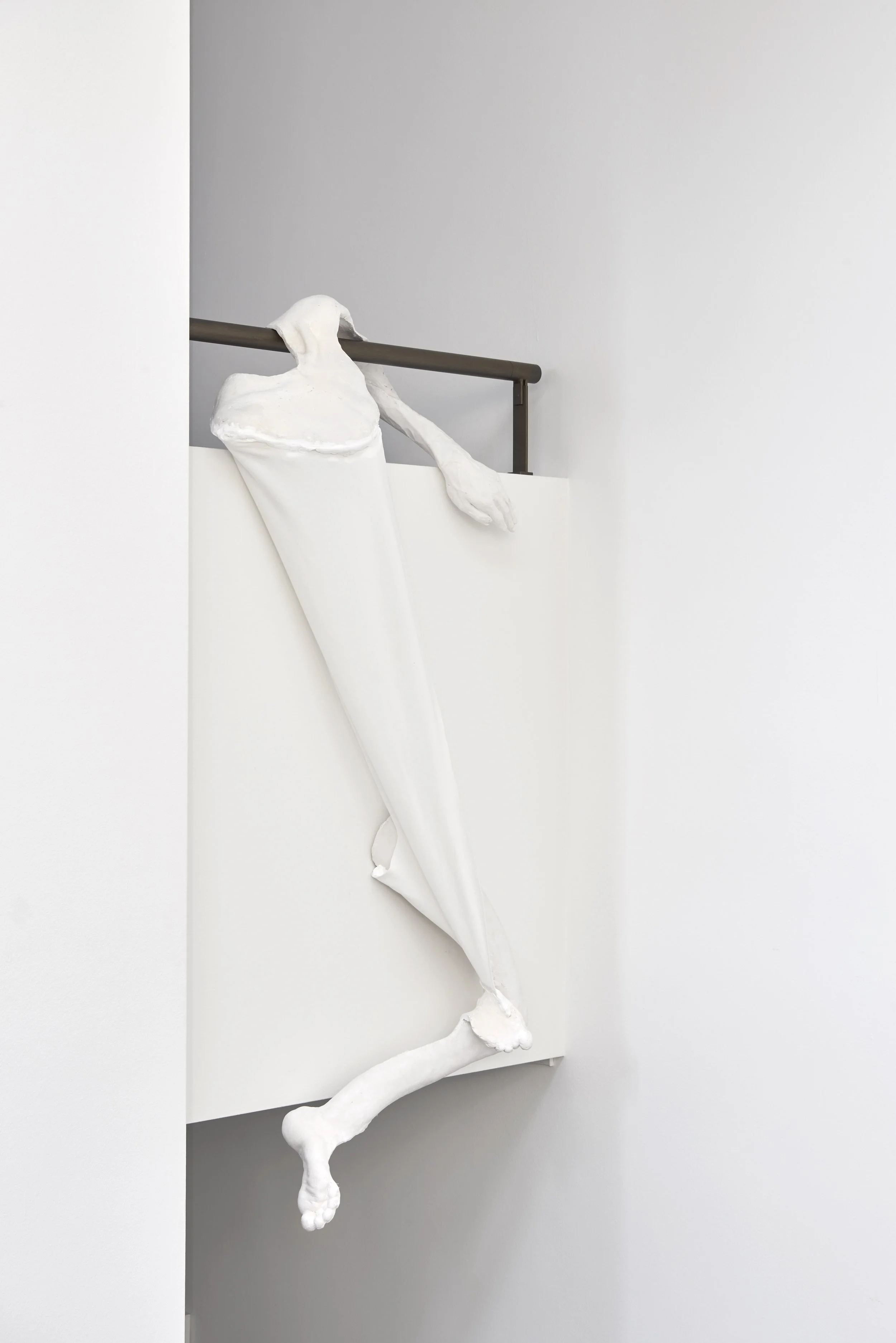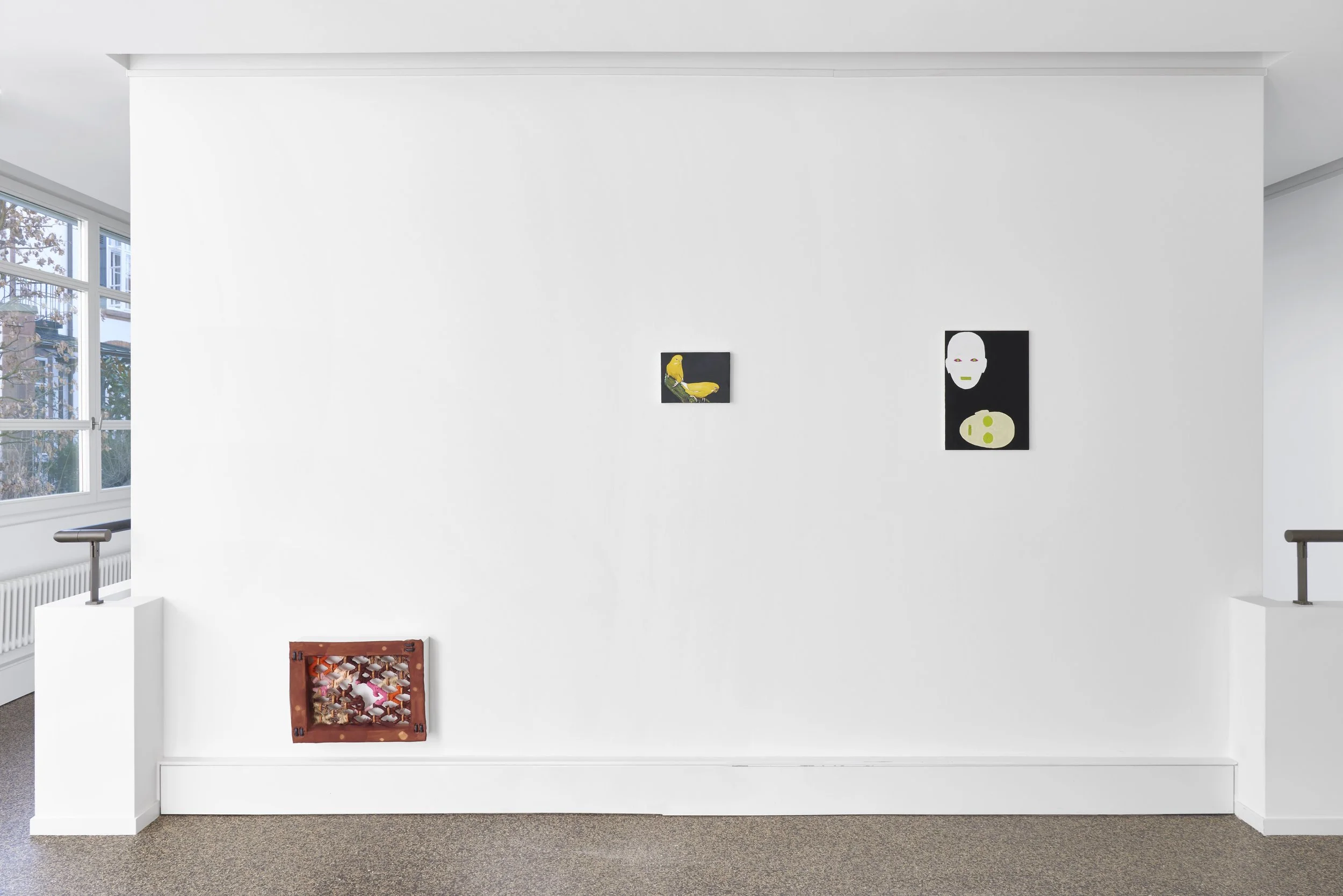 Space and how we exist within it is the forefront of the works by Timo Paris, Michael Ray-Von, and Cassidy Toner. For Triple Take, they intervened with the gallery's architecture and various rooms. Paris has created two site-specific installations that aim to promote a dialogue between the experiencing self, shaped by physical experience, and the narrative self, which is often strongly influenced by our visual perception. The work of Michael Ray-Von is concerned with illuminating elements of exhibition spaces that otherwise go unnoticed. For this installation in the gallery's kitchen, Ray-Von has projected a film featuring a dialogue generated by a neural network that he fine-tuned with screenplays collected from seven of director David Cronenberg's most notorious films from his body-horror period. These films thematically explore post-human fantasy, cyborg ontology, hallucination, disorientation, and often present objects which are not strictly non-living.