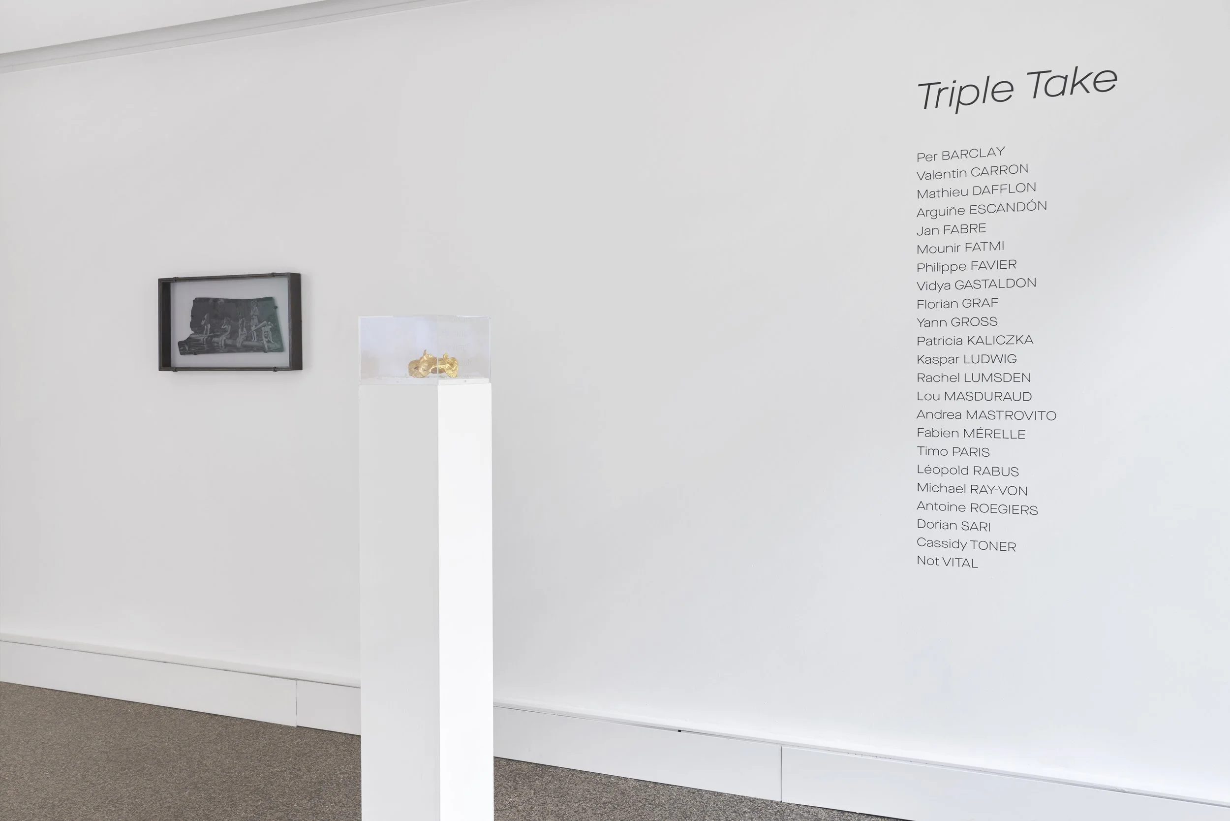 Triple Take is a group exhibition that addresses surreal moments in domestic spaces, feelings of ambiguity, time suspended and a need to escape.